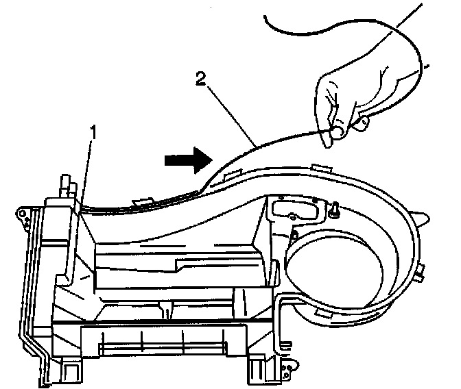 5. Install the HVAC module seal (2) to the lower module case (1).