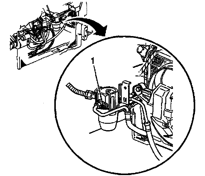 4. Remove the compressor hose nut (1) from the accumulator and disconnect the compressor line.