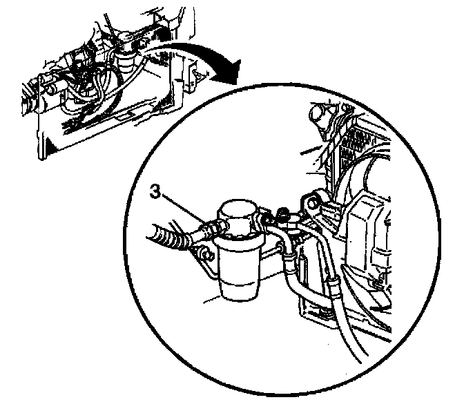 6. If equipped with 3.8L remove the suction hose nut (3) at the accumulator.