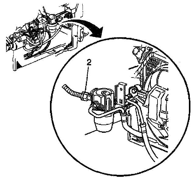 8. If equipped with 3.5L remove the suction hose nut (2) at the accumulator and position the hose aside.
