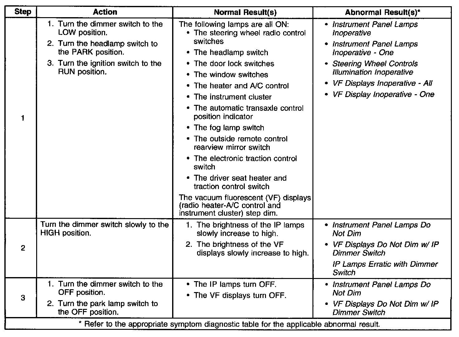 Interior Lights Dimming System Check: