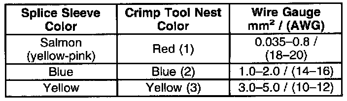 4. Select the proper sealed splice sleeve according to the wire size. Refer to the table at the beginning of the repair procedure for the color coding of the splice sleeves and the crimp tool nests.