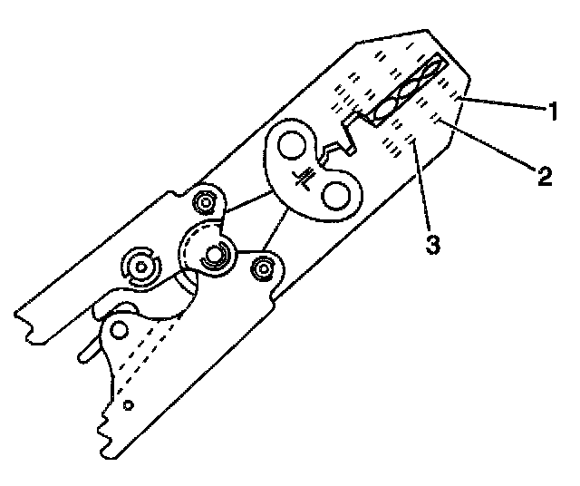 6. Place the splice sleeve in the nest. Ensure that the crimp falls midway between the end of the barrel and the stop. The sleeve has a stop (3) in the middle of the barrel (2) in order to prevent the wire (1) from going further. Close the hand crimper handles slightly in order to firmly hold the splice sleeve in the proper nest.