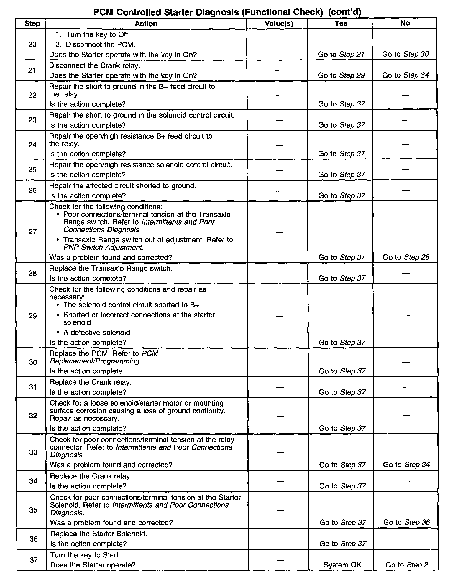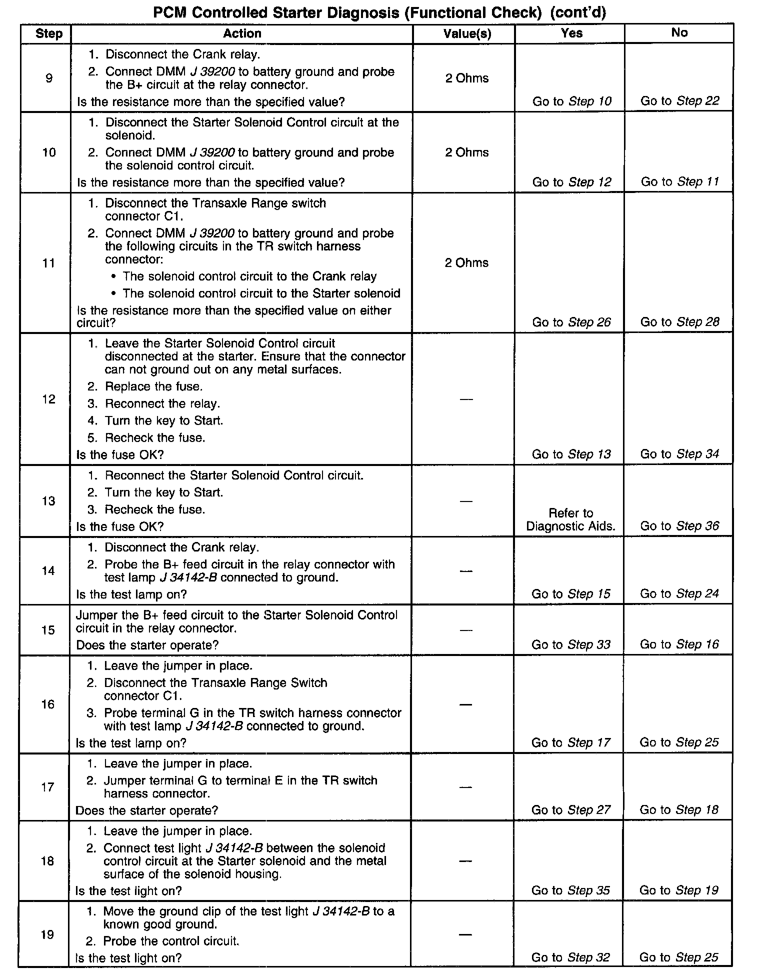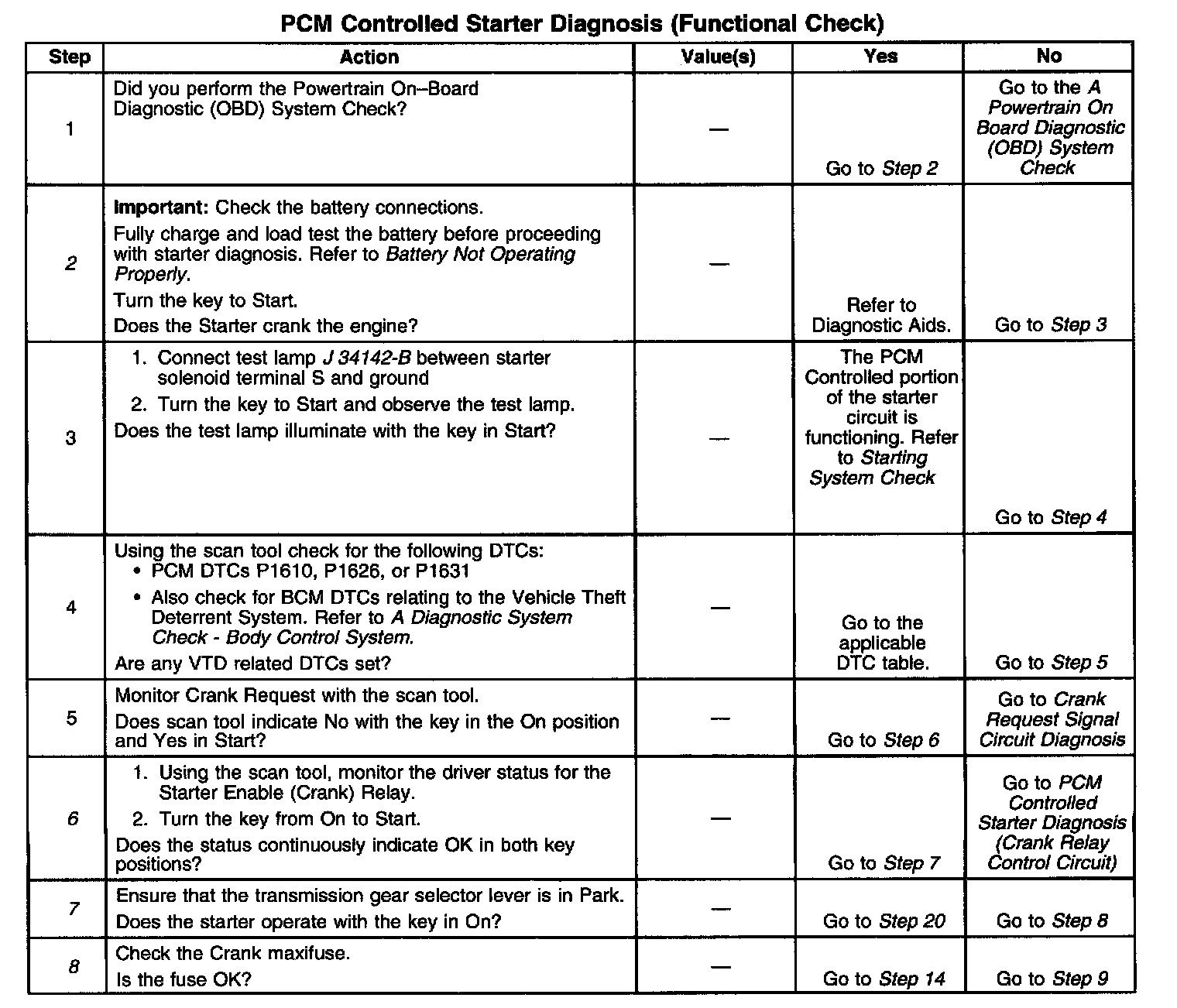 This diagnostic procedure is intended to identify electrical malfunctions within the PCM controlled portion of the starting system.