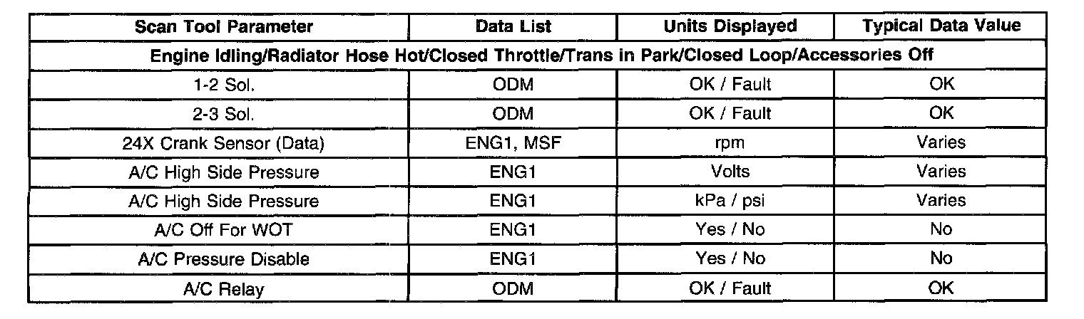 The column labeled Data List indicates where a parameter is located on the scan tool. Refer to the scan tool operating manual for instructions on how to access the individual data lists. The following is a description of each term listed:
