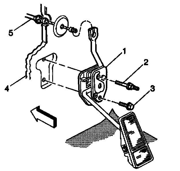 2. Remove the accelerator controls cable (5) from accelerator controls pedal (1 ).