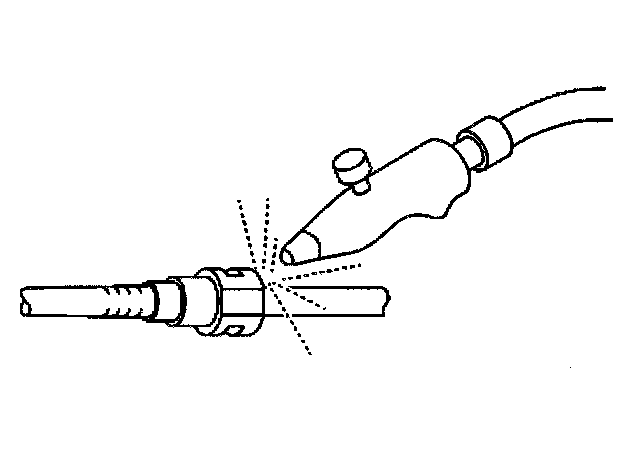 1. Apply a few drops of clean engine oil to the male fuel pipe end.