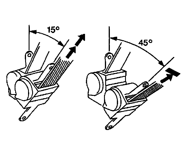 4.3. Ensure that the seat belt webbing can be pulled from the retractor at an inclination of 15 degrees or less and cannot be pulled from the retractor at an inclination of 45 degrees or more.
