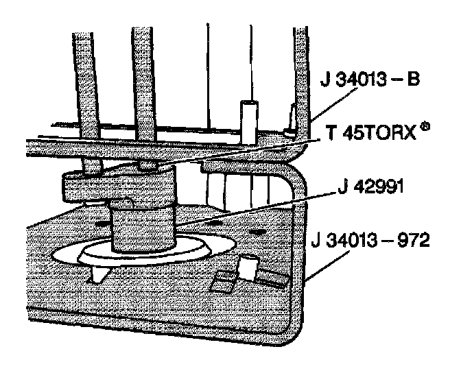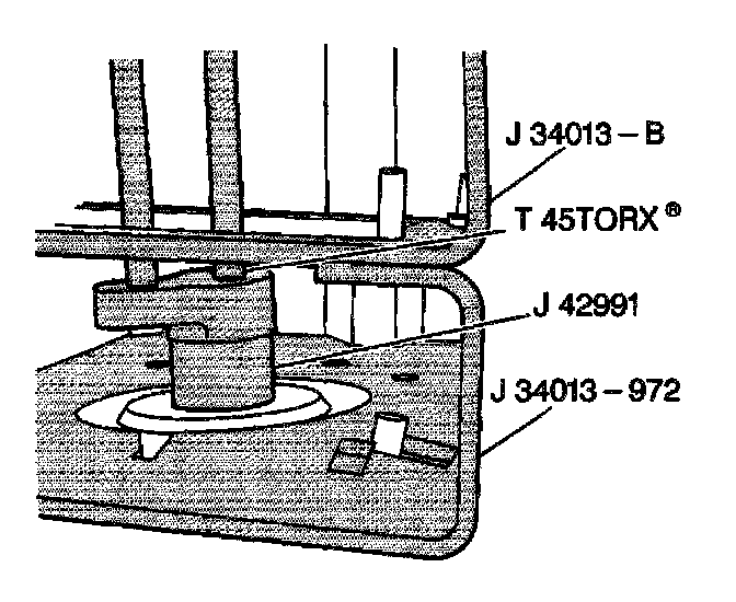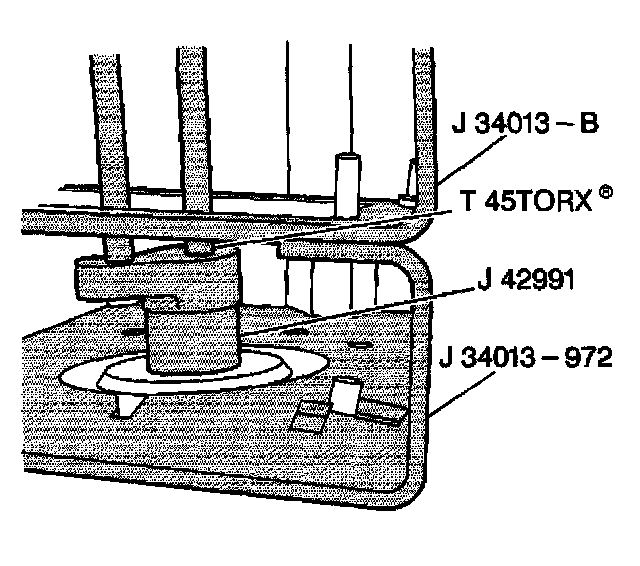 - Tighten the strut mount nut to 85 Nm (63 ft. lbs.) with J 42991 while holding the strut shaft with a 45 Tory socket (3).