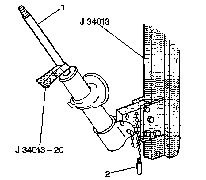 3. Insert the J 34013-197Alignment Rod into the strut (1) in order to guide the strut shaft.
