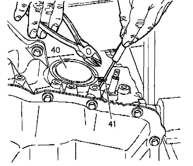 6. Depress the reverse servo cover (40), grasp one end of the cut seal (41) and pull the seal (41) out of the servo cover (40).