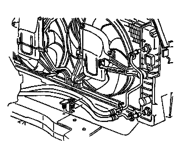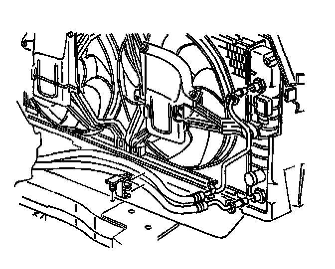 Removal ProcedureNotice: Allow sufficient clearance around the transaxle oil cooler pipes and around the hoses to prevent damage or wear which may cause fluid loss.