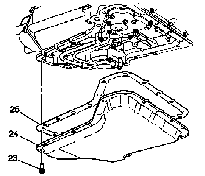 8. Remove the remaining oil pan bolts (23).
