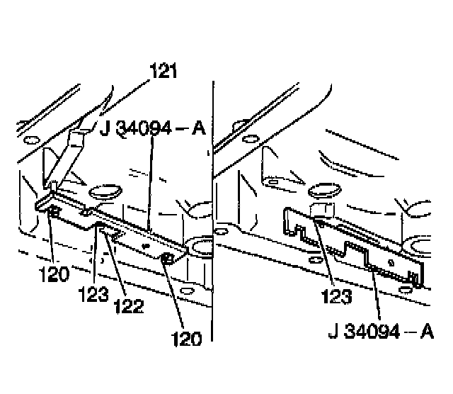 1. Use the J 34094-A to set the middle thermo pin (123).