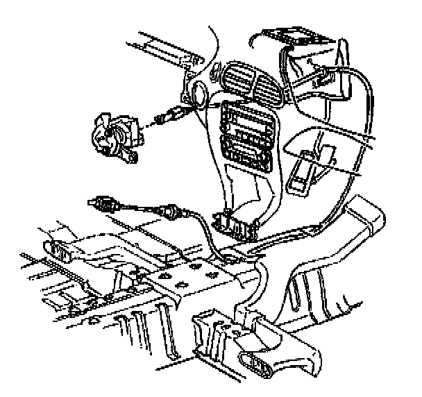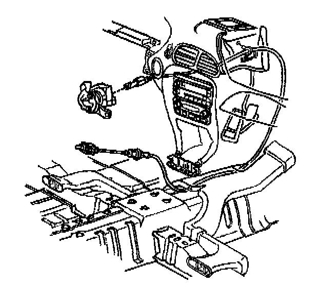 7. Remove the park lock cable from beneath the heater duct.