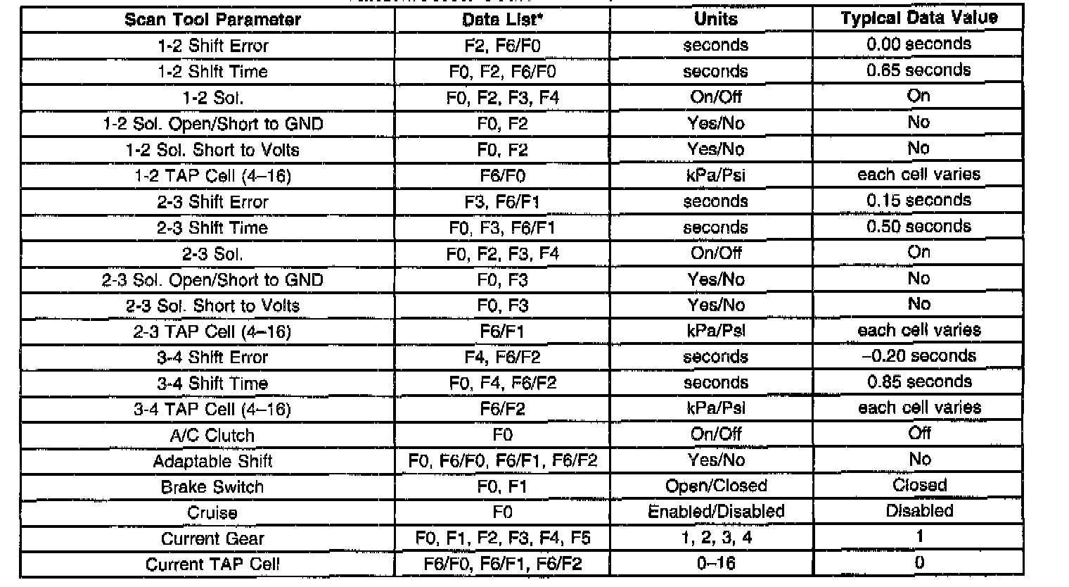 TRANSMISSION SCAN TOOL DATA VALUE