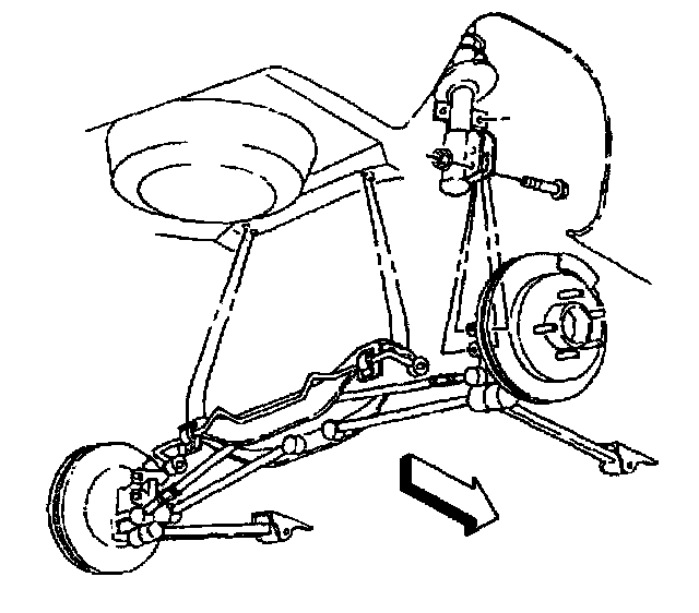 15. Adjust the rear wheel alignment. Refer to Fastener Tightening Specifications in Alignment.
