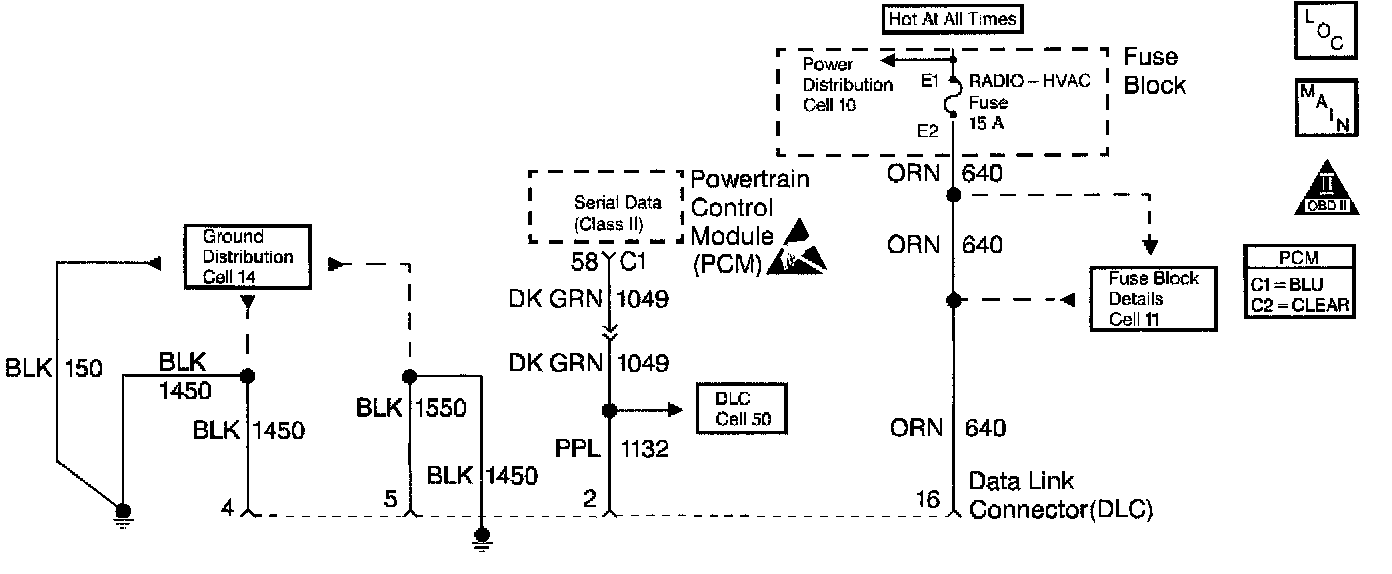 The Data Link Connector (DLC) allows the scan tool to interface with the PCM. The DLC provides the power and ground circuits to enable the scan tool. The Class 2 serial data circuit to the DLC allows bi-directional communication between the PCM and the scan tool. If communication between the scan tool and the PCM cannot be established, the procedure in the DLC Diagnosis table should be used to diagnose the condition.