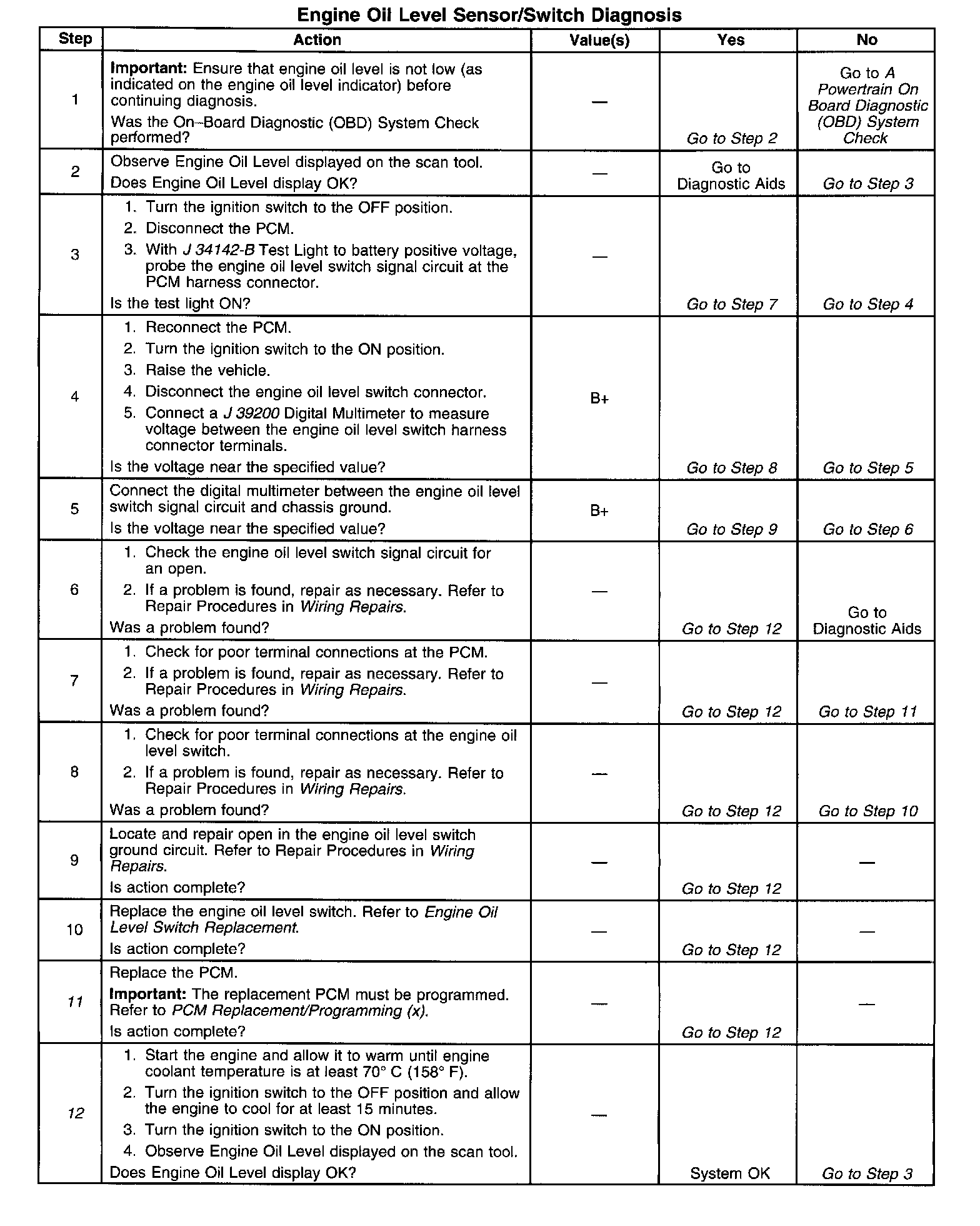 ^ A faulty connection at PCM or the oil level sensor. Inspect the harness connectors for backed out terminals, improper mating, broken locks, improperly formed or damaged terminals, and faulty terminal to wire connections.