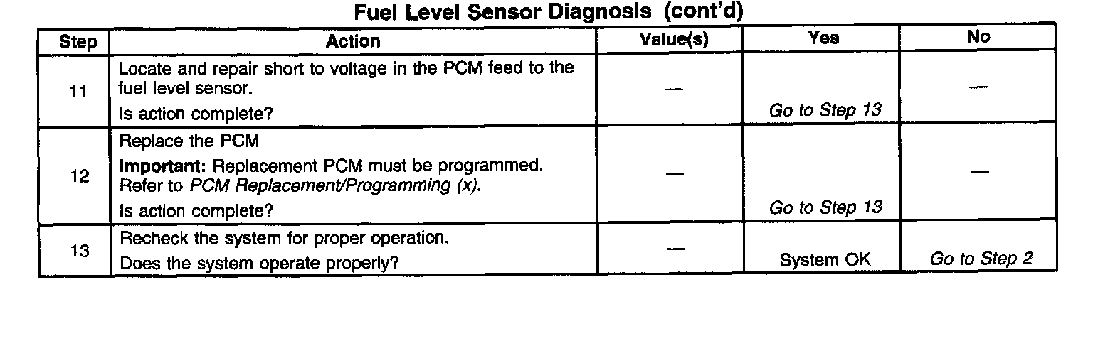 3. This checks for proper PCM voltage, ground and circuit wiring. The PCM supplies 5V to the fuel level sensor.