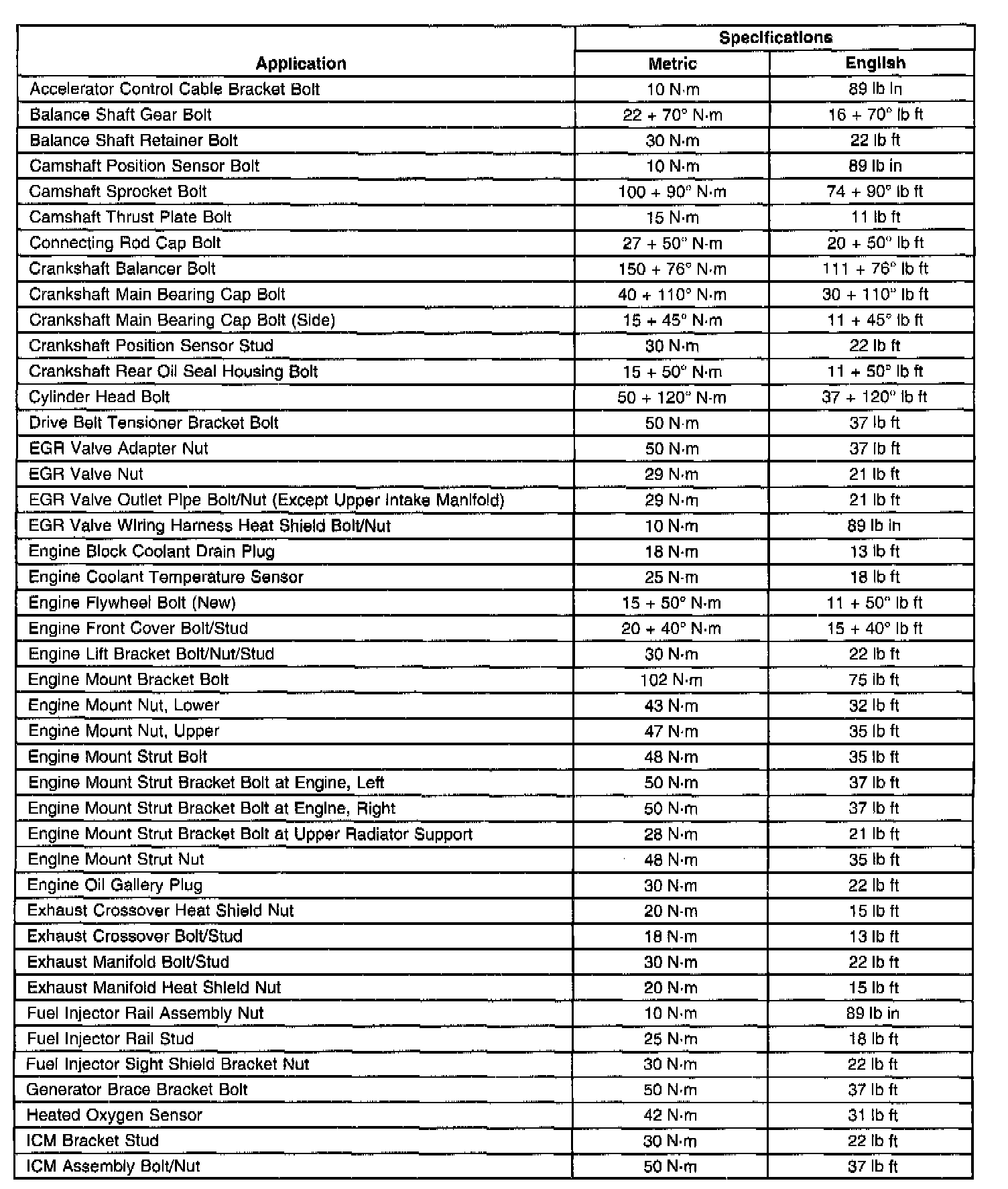 Fastener Tightening Specifications
