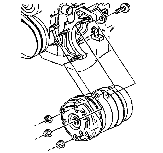 8. Remove the front mounting nuts and the rear mounting bolt from the A/C compressor.