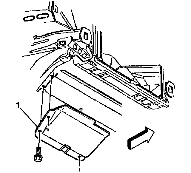 4. Remove the A/C compressor splash shield (1).