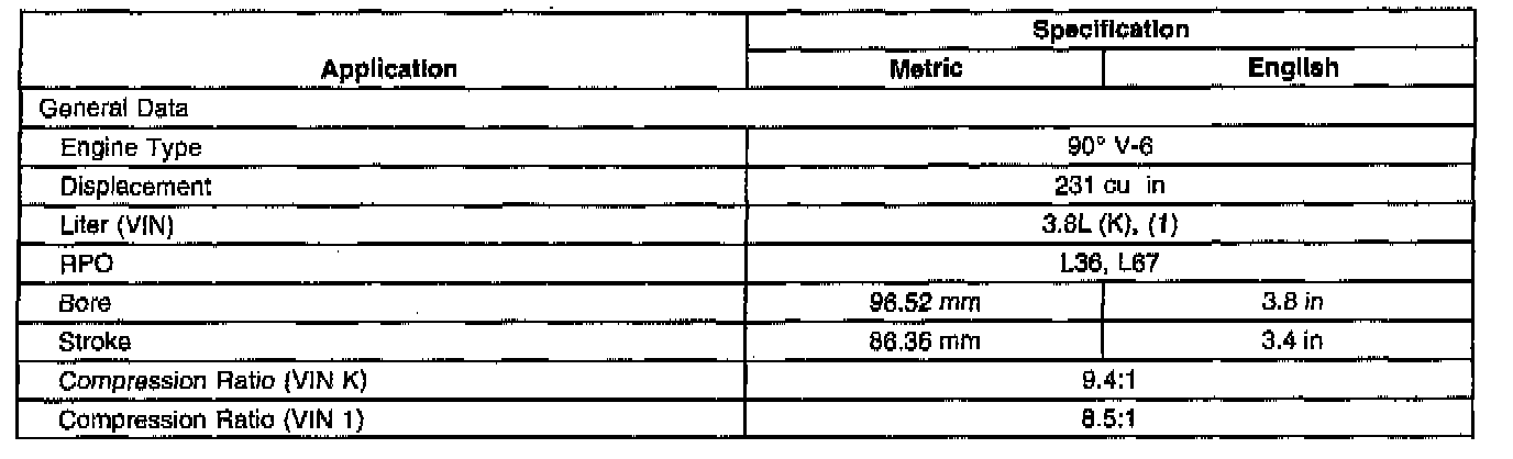 General Engine Data/Specifications
