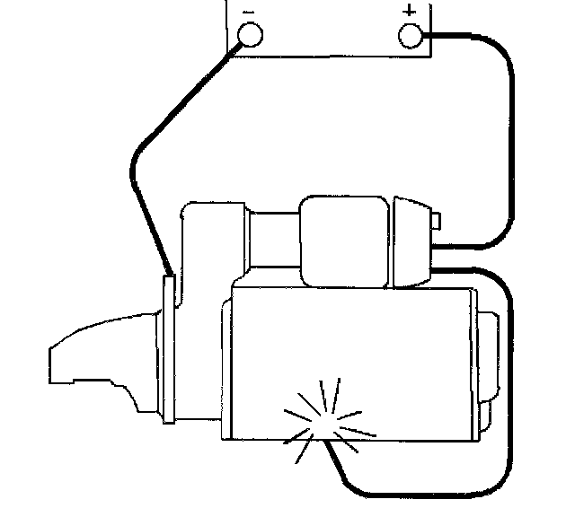 Starter Pinion Clearance CheckCAUTION: Keep fingers, tools, and any other objects away from the opening in the drive end housing while making electrical connections. The strong shifting action of the starter solenoid can cause severe personal injury or damage to components as the drive pinion moves into the cranking position.