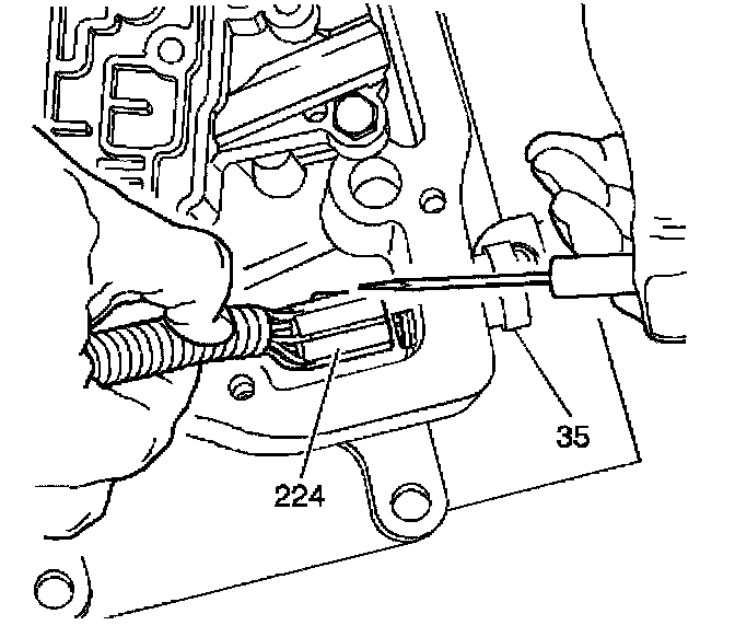 2. Disconnect the wiring harness assembly (224) from the electrical connector (35) in the case.