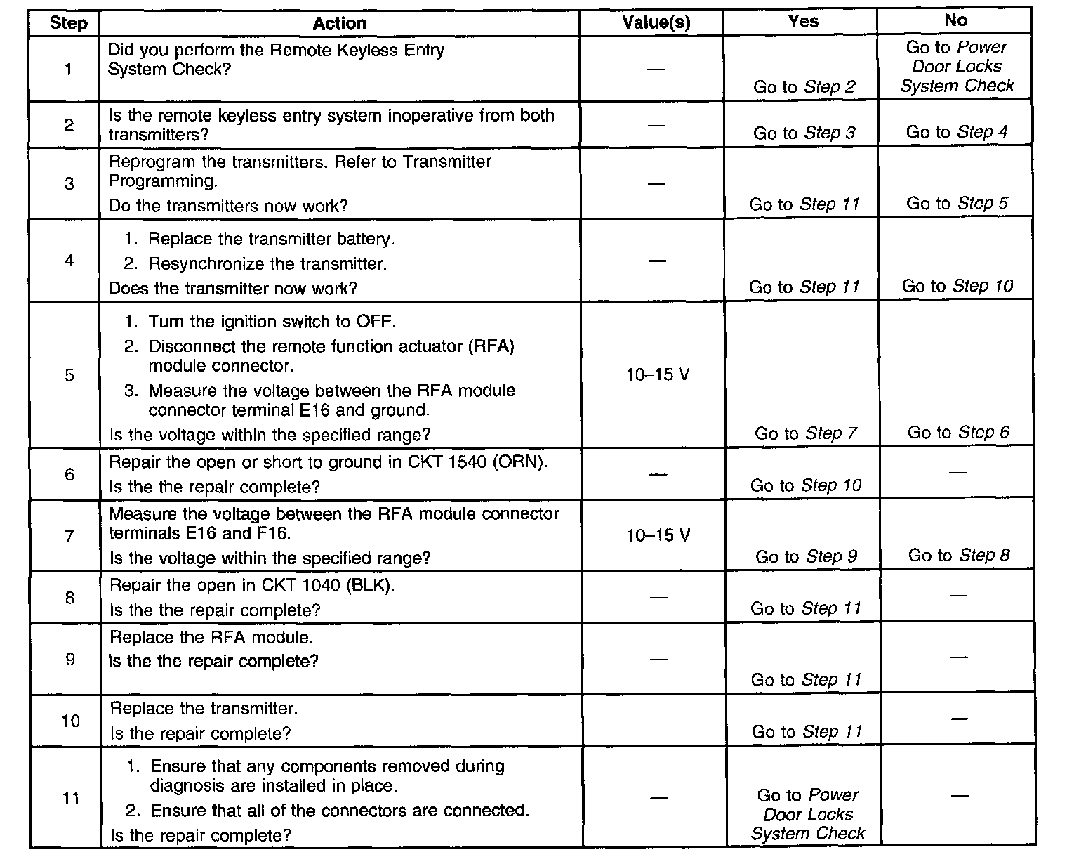 Remote Keyless Entry System Inoperative:
