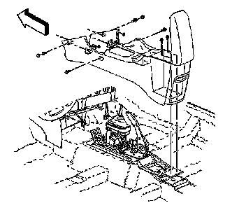 11. Remove the front floor console, pulling up and rearward, guiding the park brake lever boot over the park brake lever.