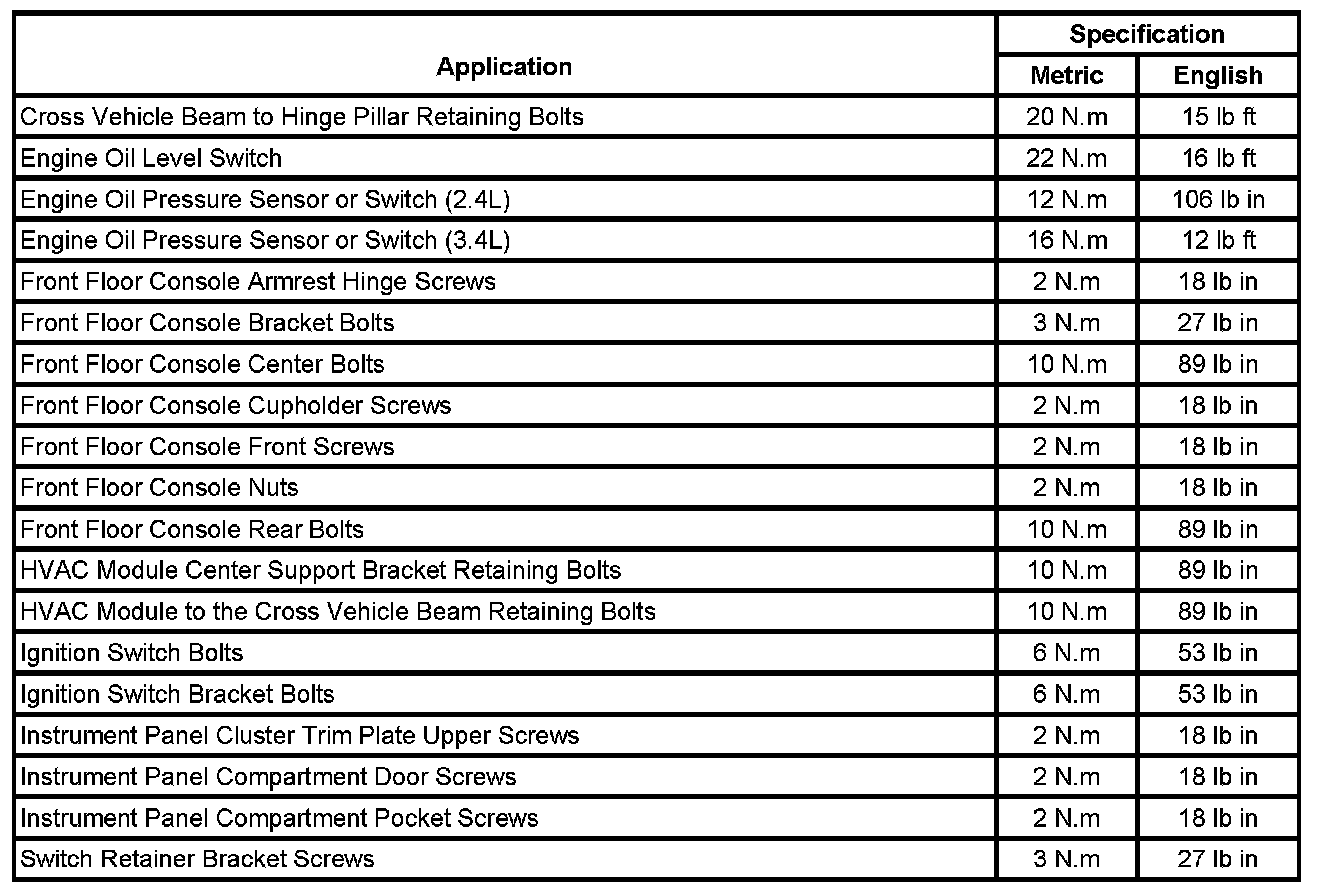 Fastener Tightening Specifications