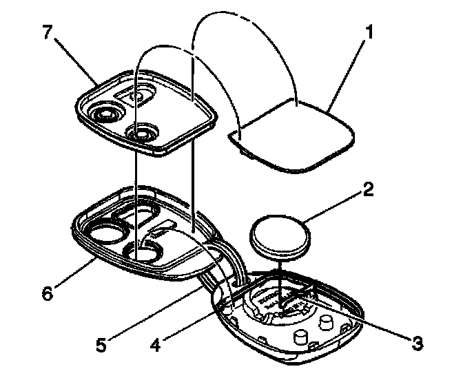 1.1. Insert a small flat-bladded tool between the 2 halves of the transmitter case (6, 4) at the slot provided near the key ring hole (5).