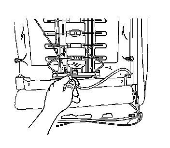 5. Pull back the front bucket seat cushion cover in order to gain access to the lumbar support cable and control. Refer to Front Seat Cushion Cover Replacement.