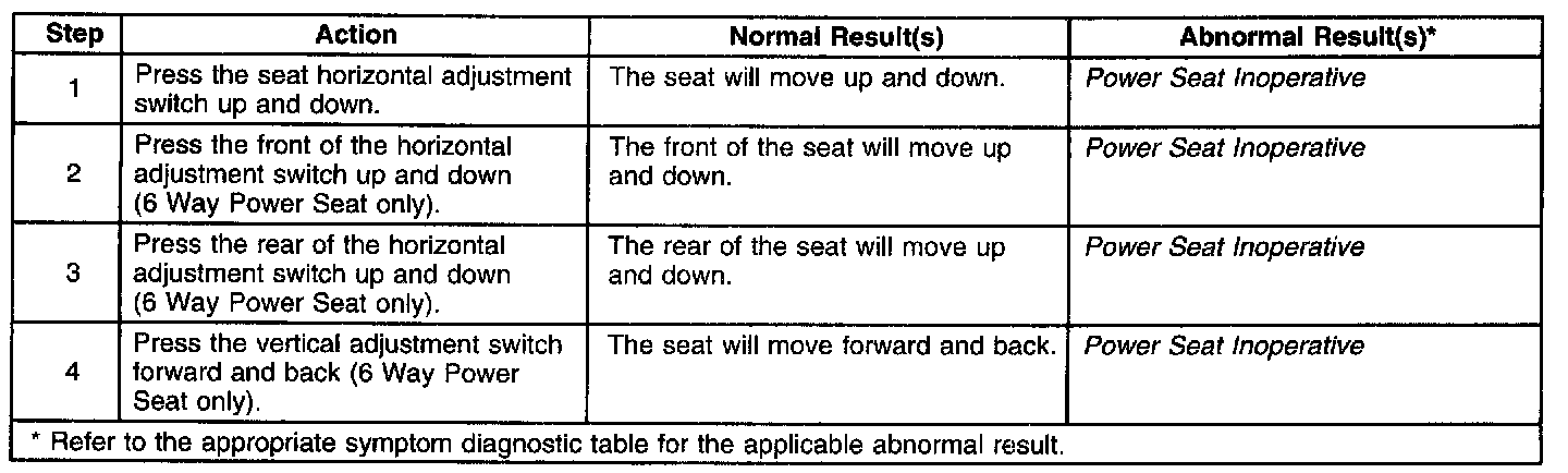 Power Seats System Check: