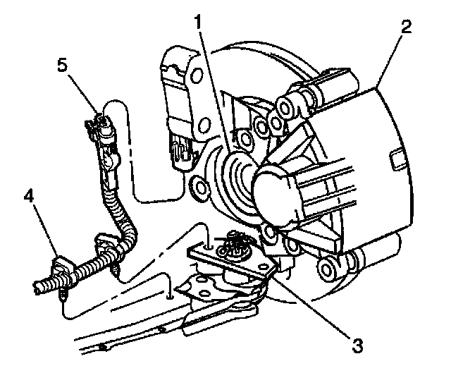 2. Remove the front wheel speed sensor harness connector (5) from the front wheel speed sensor.
