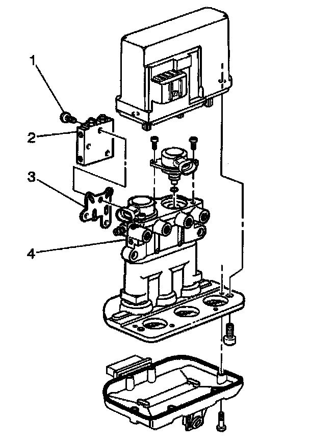 1. Install the brake proportioning valve (2) to the brake modulator assembly (4) using a new gasket.