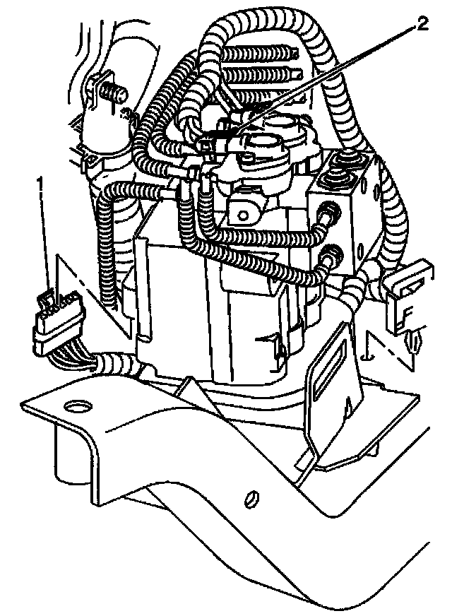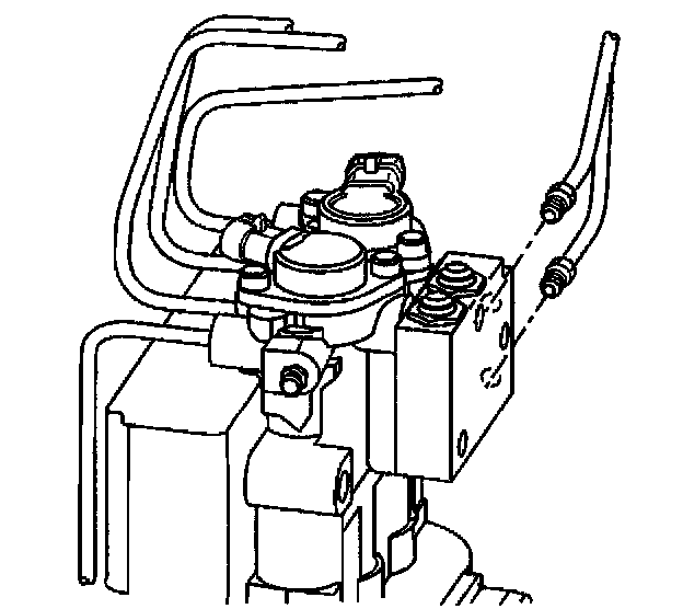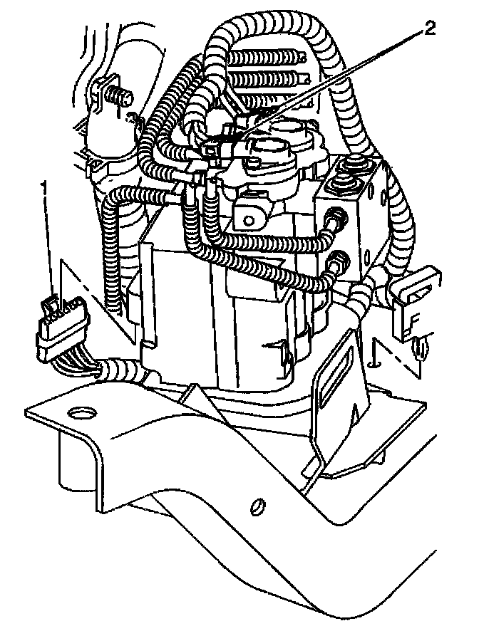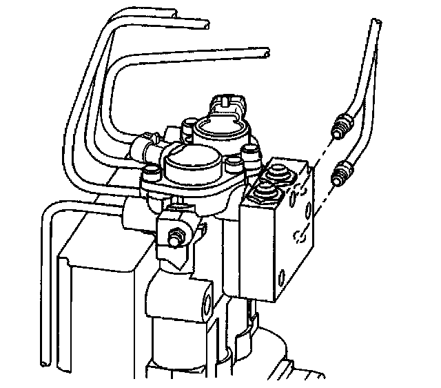 Removal ProcedureCaution: To help avoid personal injury, due to a retained load on the brake modulator, the Gear Tension Relief function of the scan tool must be performed prior to removal of the ABS brake modulator assembly.