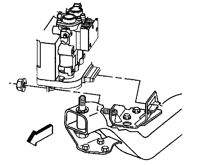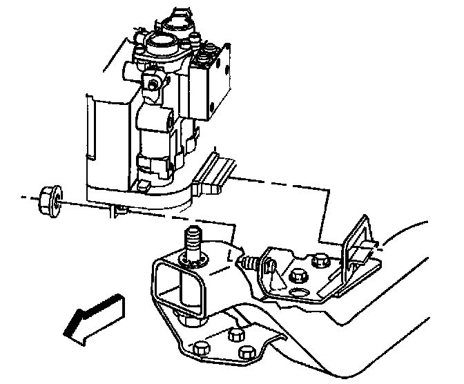 9. Remove the brake modulator assembly to bracket mounting nut.