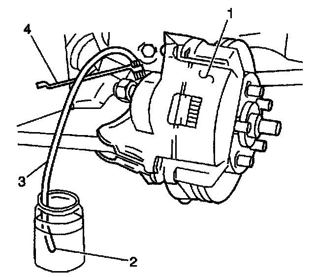 11.2. Submerge the opposite hose end in a clean container partially (2) filled with clean brake fluid.