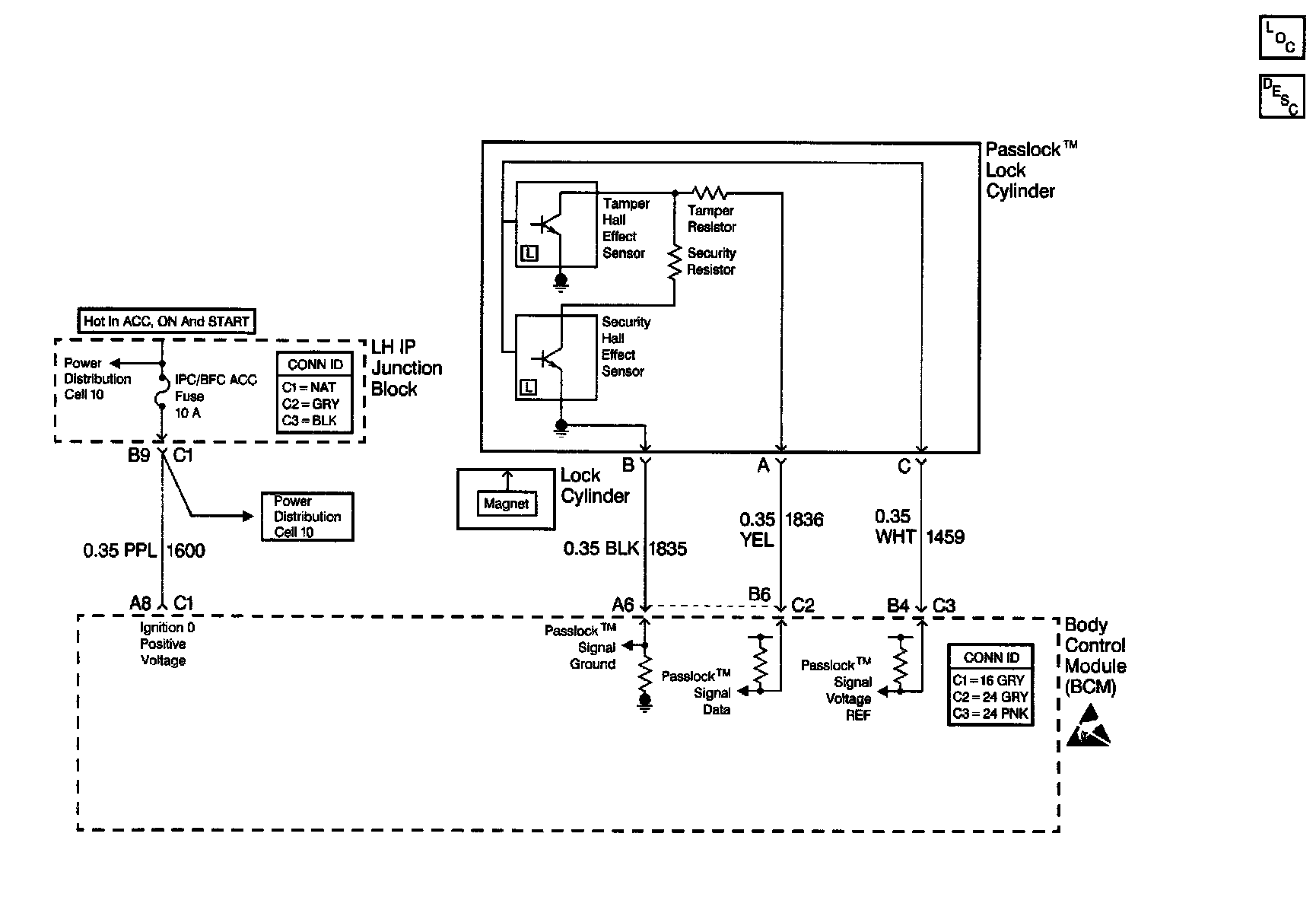 Theft Deterrent System Schematics: Theft Deterrent: Passlock(TM) Lock Cylinder And BCM: