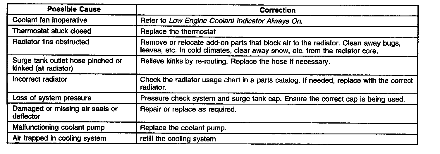 If these conditions can be eliminated as the cause of overheating, refer to the table.