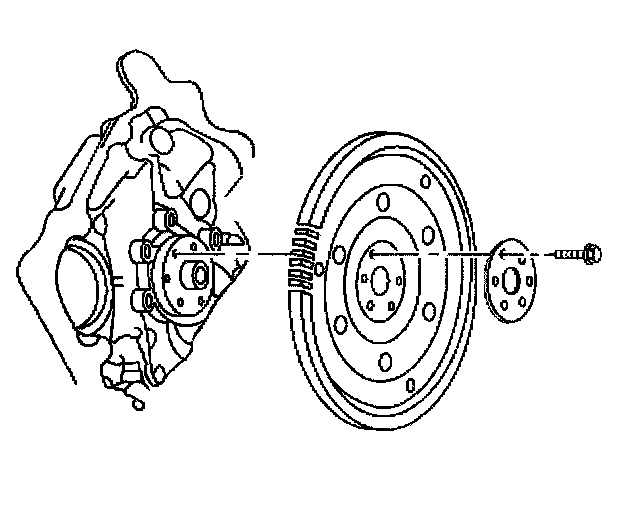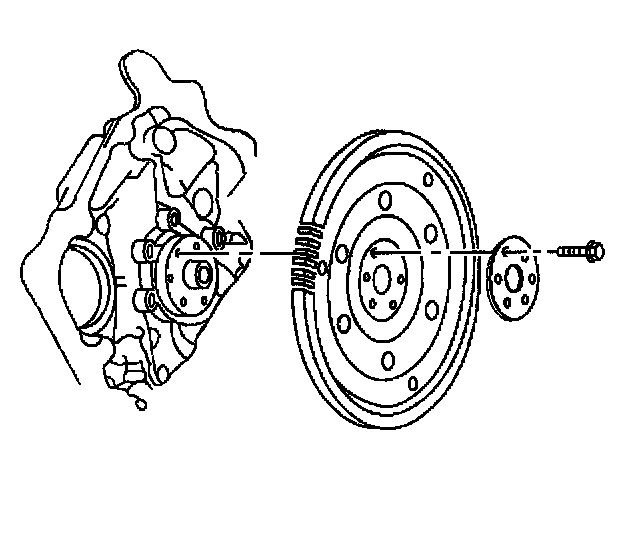 1. Install the flywheel, the retainer and the bolts.