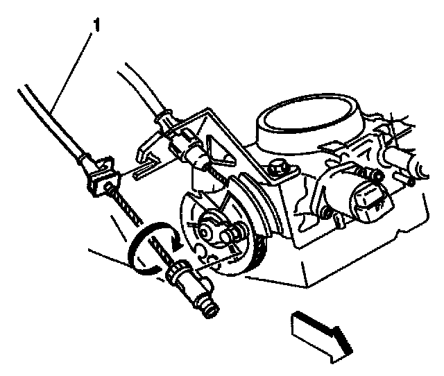 In order to avoid cruise control cable damage, position the cable out of the way while you remove or install the engine. Do not pry or lean against the cruise control cable and do not kink the cable. You must replace a damaged cable.
