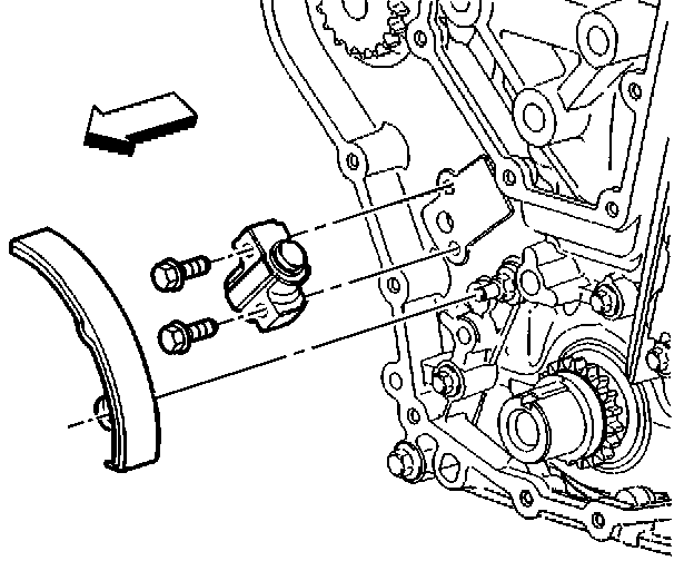 3. Loosely install the tensioner assembly and bolts to the timing chain housing.