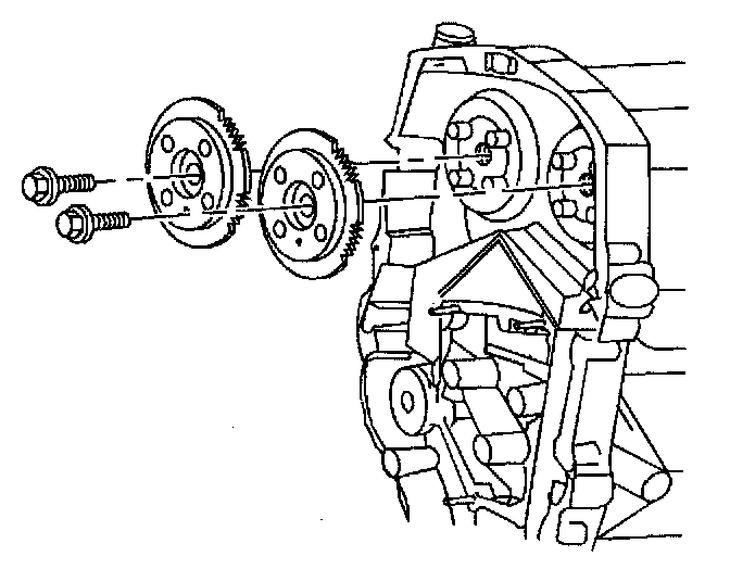 1. Install the camshaft sprockets. The sprockets are identical and interchangeable.