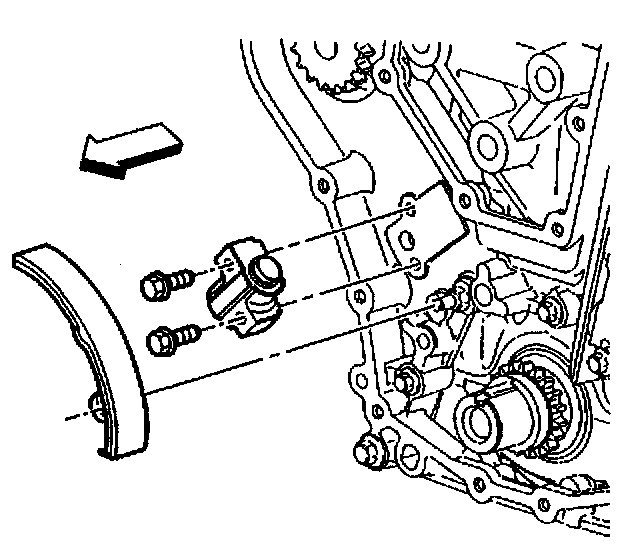 20.3. Release the tensioner plunger. The plunger should press firmly against the back of the timing chain tensioner shoe.