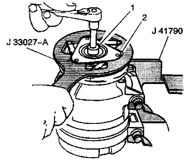 1. Clamp the J 41790 in a vise and attach the compressor to the holding fixture.
