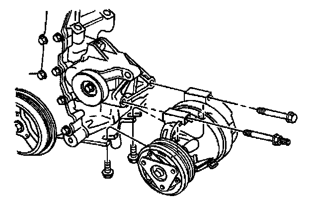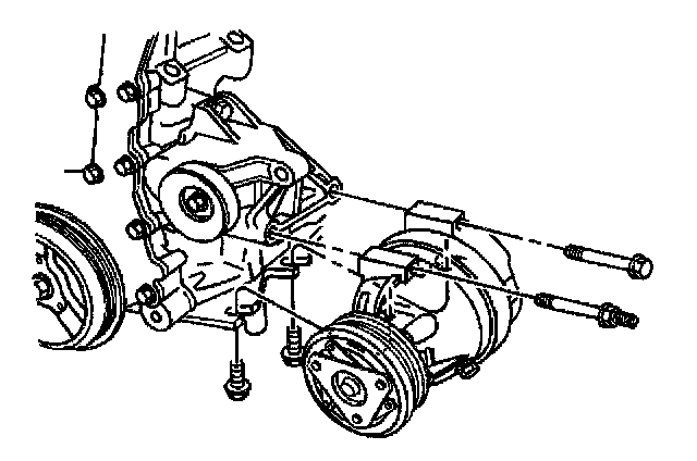 3. Install the compressor and loosely install the two compressor to idler pulley bracket bolts.